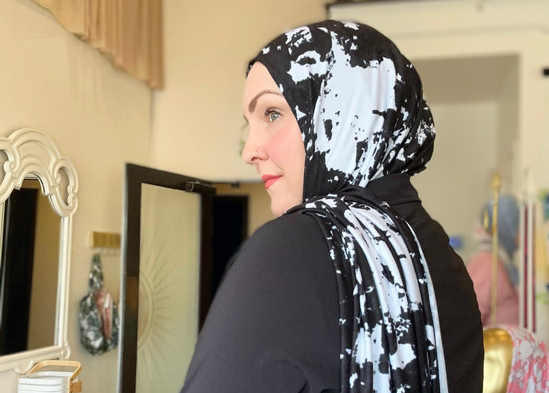Printed Jersey Hijab: Black Dandelion Puffs