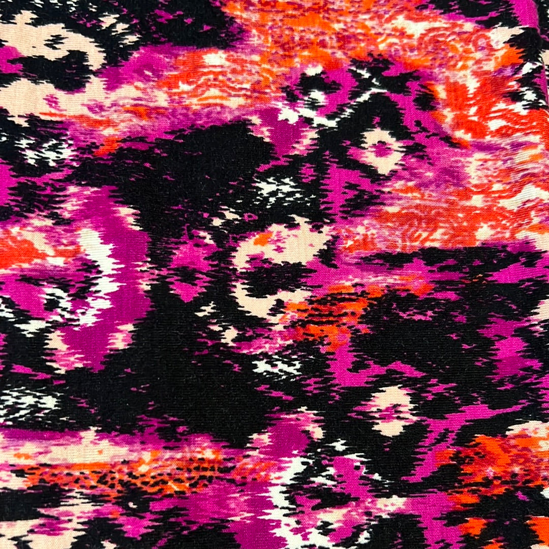 Color: Dark purples, black, orange and cream ikat pattern. Pattern placement varies. NYC Designer.