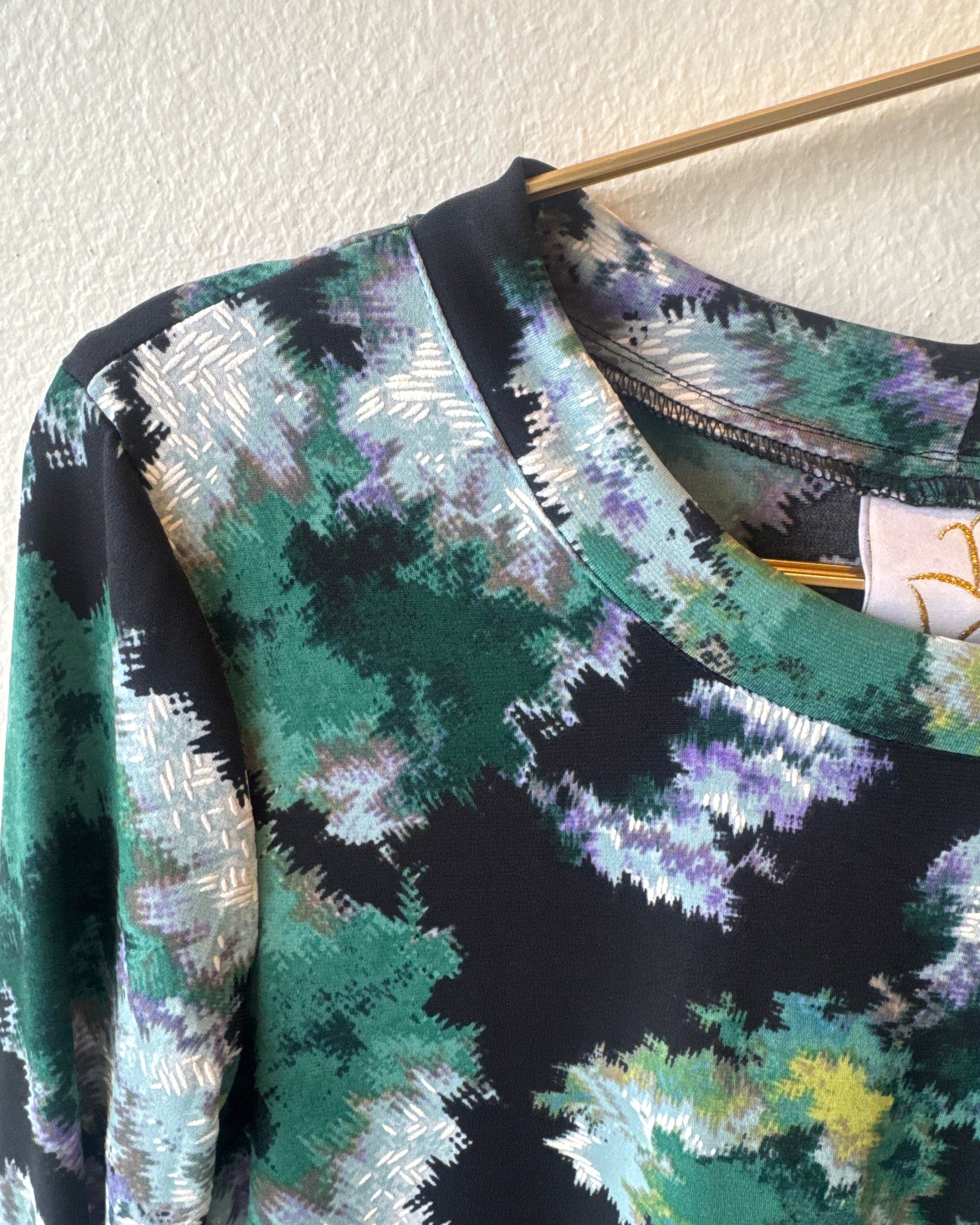 - Made with overstock stretchy jersey fabric from designers making this piece more sustainable than items imported