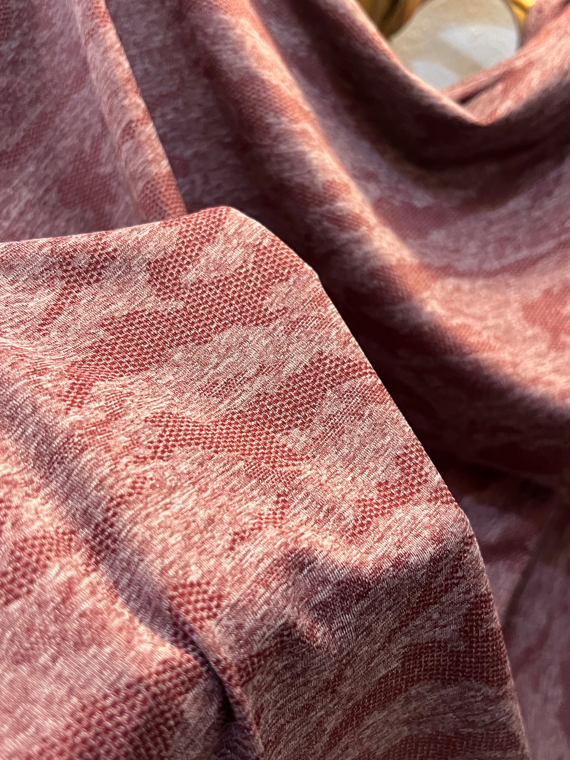 Color: light burgundy intertwined with a slight lace looking burnout pattern. Color on both sides. Truly unique texture and design.