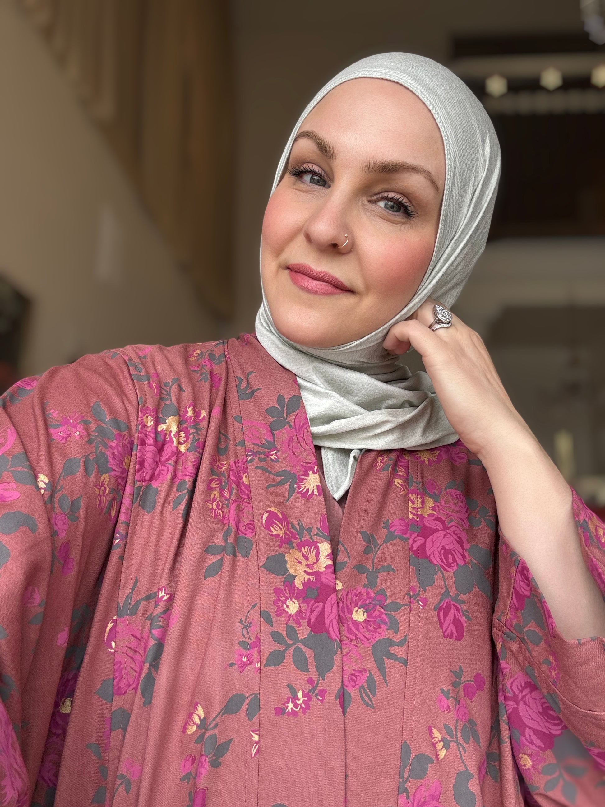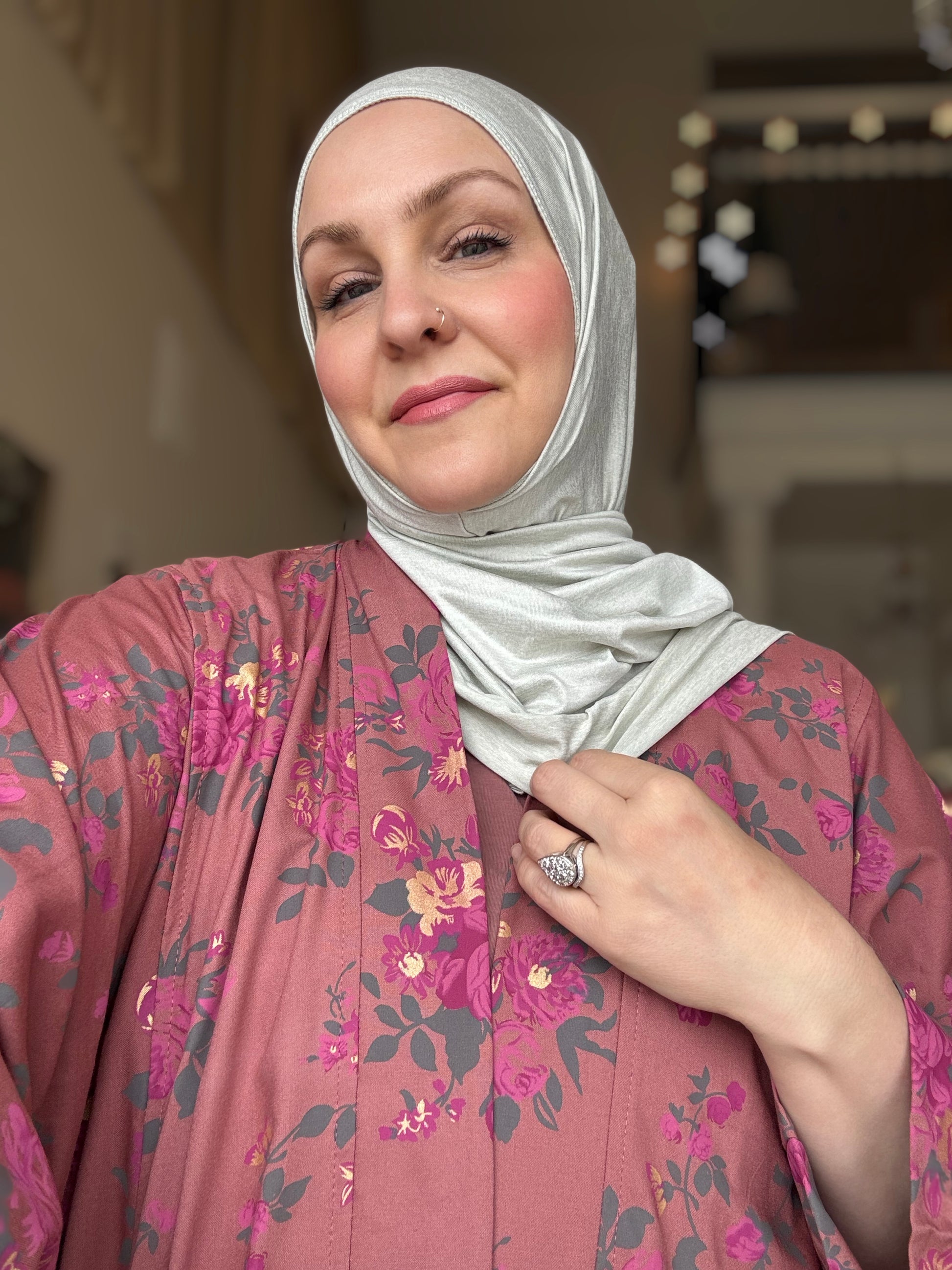 Care instructions: Hand wash cold. Hang to dry. Never put in the dryer! Light iron on the back side of hijab.