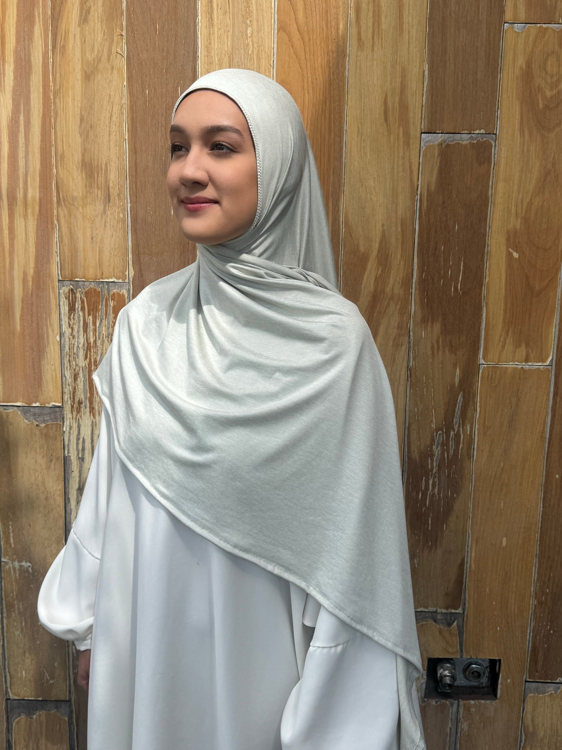 Regular wrap style: This is an oblong rectangular hijab sewn all the way around with beautiful finished edges.