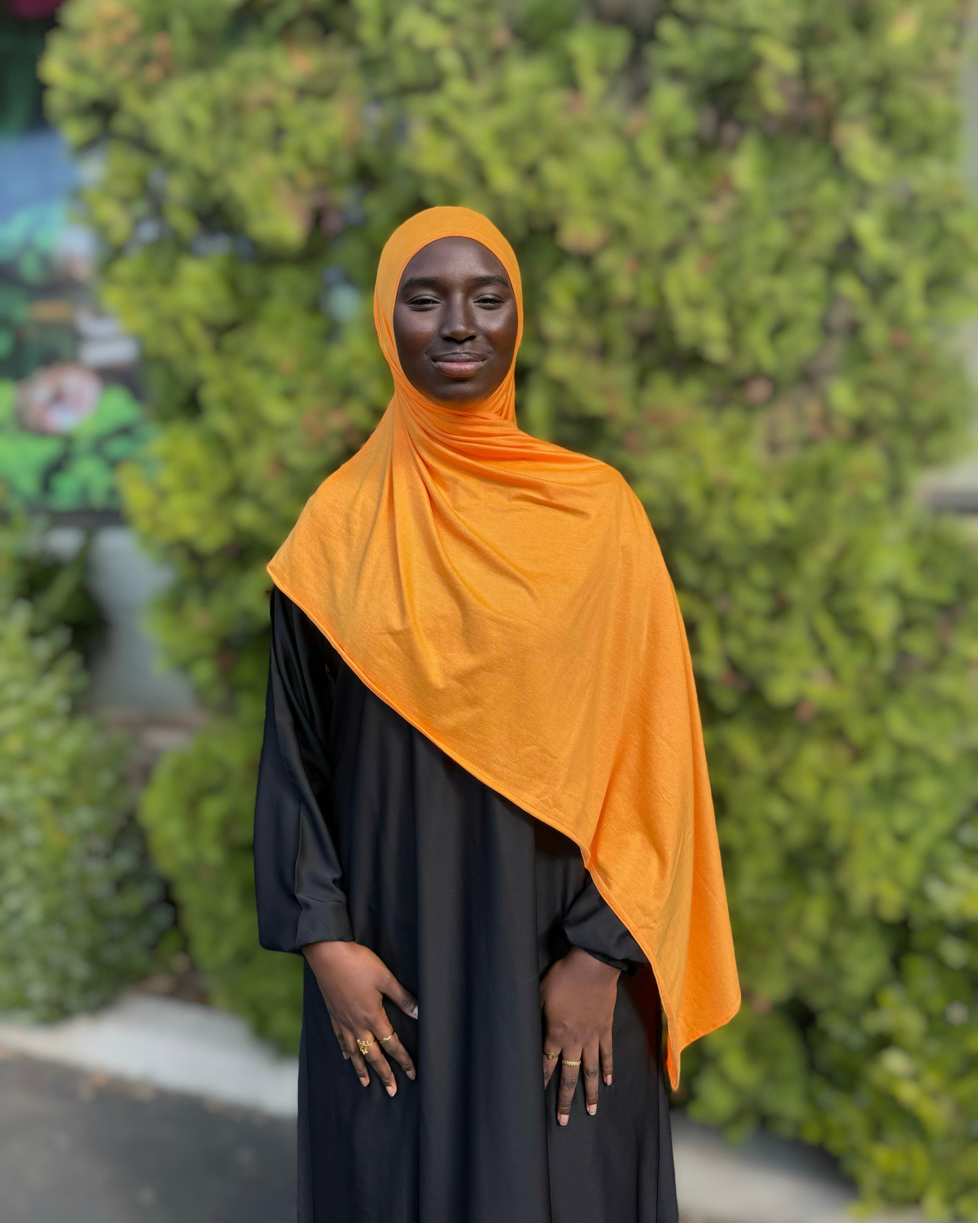 Regular wrap style: This is an oblong rectangular hijab sewn all the way around with beautiful finished edges.
